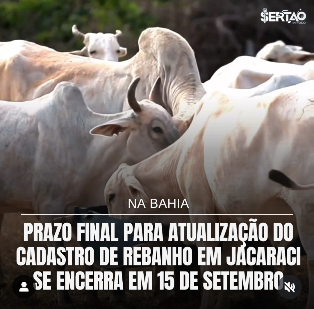 Os produtores rurais de Jacaraci têm até o dia 15 de setembro para regularizar o cadastro de seu rebanho junto à Agência de Defesa Agropecuária da Bahia (ADAB). A chamada é para evitar que os pecuaristas percam o prazo e fiquem em situação irregular.