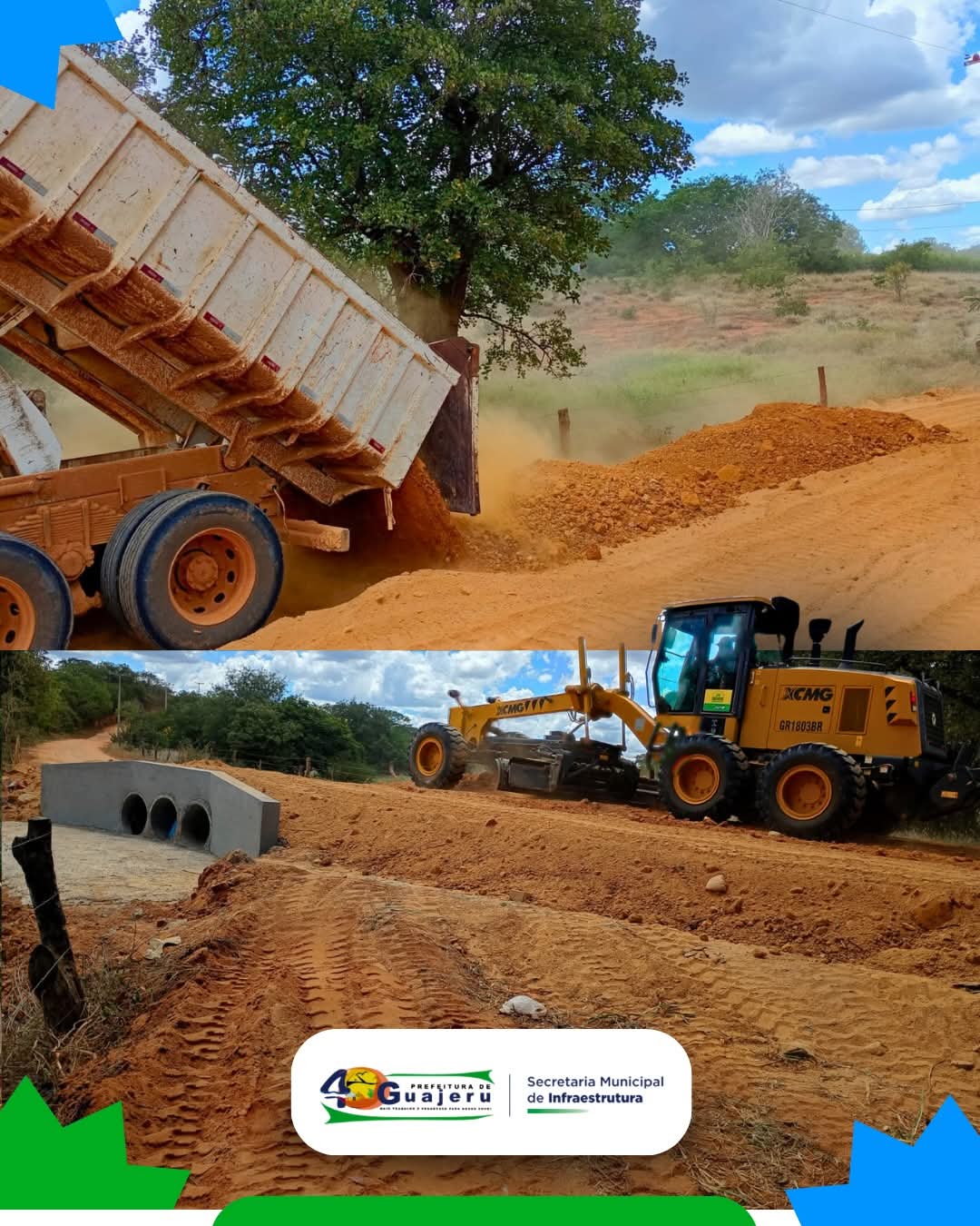 A Prefeitura de Guajeru, por meio da Secretaria Municipal de Infraestrutura, anunciou a conclusão das obras da passagem molhada na Fazenda Seixo. A estrutura é considerada estratégica para a região, pois compõe o trecho da estrada que interliga os municípios de Guajeru e Caculé.​Com a finalização dos trabalhos, o tráfego de veículos e o deslocamento de moradores ganham mais segurança e agilidade. Segundo a gestão municipal, o objetivo principal é eliminar os transtornos causados pelo isolamento ou pela dificuldade de travessia durante os períodos de chuva, quando o nível da água costuma subir na localidade.​Impacto na Mobilidade​As imagens registradas no local mostram o uso de maquinário pesado, como motoniveladoras e caminhões caçamba, para a preparação do solo e finalização do aterro nas proximidades da nova estrutura de bueiros.​”A obra traz mais tranquilidade para quem precisa passar pela região diariamente, garantindo dignidade e acessibilidade para todas as comunidades rurais”, destacou a nota oficial da prefeitura.