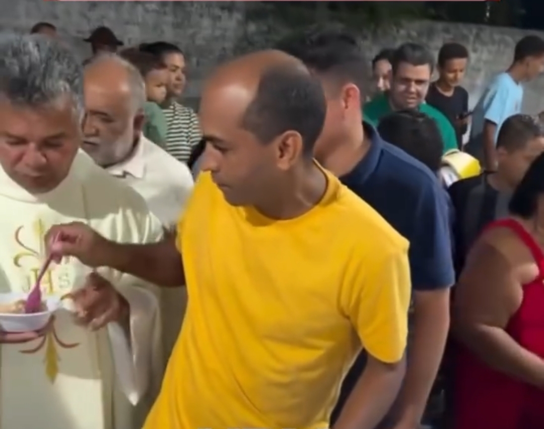 Um vídeo registrado durante o almoço de comemoração do aniversário da paróquia de Miguel Alves, cidade a 110 km de Teresina, viralizou nas redes sociais e gerou polêmica na região. As imagens mostram o secretário municipal Cláudio Vaz retirando a colher que estava no prato de um padre para entregá-la ao prefeito da cidade, Veim da Silva.O episódio ocorreu justamente no momento em que o sacerdote recebia homenagens pela data festiva. No vídeo, o padre aparece sentado à mesa, pronto para iniciar a refeição, quando o secretário se aproxima, remove o talher do prato do religioso e o repassa ao gestor municipal, que estava ao lado.